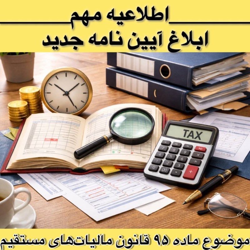 • ابلاغ آیین‌نامه جدید دفاترمالی ،اسناد و مدارک و اظهارنامه مالیاتی ،رسیدگی و تشخیص درآمد مشمول مالیات موضوع ماده ۹۵ قانون مالیات‌های مستقیم